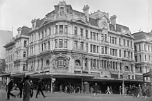 The façade was preserved and the store was rebuilt with an extension to the south. Later, there was an extension to the north and an addition of two floors, creating a much larger department store.[7] The business closed in 1937.[9] In 1945, the building was sold to the Federal Government for a branch of the Commonwealth Bank.[5] The former emporium and the adjacent Finks Building were demolished in 1969 for an office tower,[10]