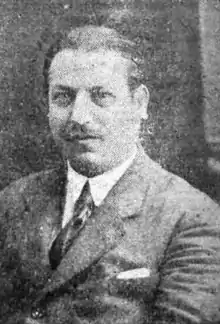 The couple had at least 4 children; Melchor was born among the youngest ones.[20] His older brothers, Antonio and Augusto, graduated as engineers and developed own textile and chemical businesses in Barcelona and Valencia.[21] Melchor was first educated in the Mataró Piarist college[22] and then in Instituto de Barcelona.[23] Like his siblings he trained to become an engineer and received technical education at Escuela de Ingenieros Industriales y Textiles in the nearby Terrassa.[24] It is not clear if he graduated, yet Melchor has never pursued a related career; in 1910 he commenced co-operation with Catalan journals. In 1920 he married Paquita Rubio García; nothing is known about her except that she came from a military family.[25] The couple remained childless, yet Melchor and his sister-in-law[26] Elvira Bonet had one son, Xavier Ferrer Bonet, a later Partido Carlista activist and writer.[27] Augusto Ferrer-Dalmau Nieto, a well-known painter specializing in historical military themes, is the great-grandson of Melchor's brother.[28]