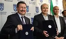 After he returned from military service, Gökçek set up a business. Then, as a member of the Motherland Party, he acted from 1984 to 1989 as the Mayor of Keçiören, a district in Ankara, under the leadership of the Mayor of Ankara Metropolitan Municipality, Mehmet Altinsoy.[3] Subsequently, Melih Gökçek ran the Social Services and Child Protection Society as its General Director from 1989 to 1991. In 1991, he entered the parliament as Ankara MP for the Welfare Party. While he was an MP during local elections in 1994, he stood for the post of Mayor of Ankara and won the election.[3] He was re-elected in 1999 as the candidate of the Virtue Party and became the first person to be successively elected as the Mayor of Metropolitan Municipality for two times in the history of Ankara.[3] He then joined the Justice and Development Party and was elected for the same duty for a third time in 2004 and a fourth time in 2009 and thus became the first person to be successively elected as the Mayor of the Metropolitan Municipality for four times in the history of Ankara.[4] Gökçek is also the first mayor in the history of Ankara who was elected four times in a row.[4] Once again Gökçek was nominated by his party, the Justice and Development Party, as its candidate for the post of Mayor of Ankara and won the elections on 30 March 2014. On the eve of the 2014 local elections, several electricity cuts and allegations of vote stealing dominated the vote counting processes, especially in Ankara. Counting was abruptly stopped in the district of Çankaya, a strong pro-opposition district, for unknown reasons before resuming hours after. With Gökçek appearing to be one percentage point ahead of his rival Mansur Yavaş by the morning after the election, a massive campaign was started by the opposition Republican People's Party (CHP) to check all ballot box data.[6] Numerous miscalculations, where CHP votes had been recorded for other parties instead, were observed. Despite this, the Supreme Electoral Council of Turkey rejected the opposition's request for a recount and Gökçek was thus declared the winner. Despite this, most journalists, opposition politicians and western diplomats consider Yavaş to be the true winner of the election.[7] With the Constitutional Court rejecting Yavaş's appeal for a re-vote, the CHP has since taken the case to the European Court of Human Rights. Following President Erdoğan's remarks in 2017 on "rebuilding" the AKP after being elected party leader, it was widely speculated that Gökçek would resign along with five other AKP mayors critical of Erdoğan's increasing authority. During several speeches from May to October 2017 Erdoğan pointed about "metal fatigue" (metal yorgunluğu), referring to long-time incumbent AKP mayors such as Gökçek. On 23 October, Gökçek tweeted his resignation announcement with the farewell ceremony taking place on 28 October.