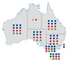 - ↑ Including two Liberal National Party of Queensland (LNP) senators who sits in the Nationals party room.