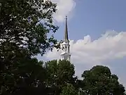 Memorial Chapel is a non-denominational building on the campus of the University of Maryland, College Park, constructed to honor those associated with the university who had lost their lives serving in the United States Armed Forces.[3] The building, designed by Henry Powell Hopkins, actually is made up of three chapels: the Main Chapel, the West Chapel, and the Chapel of the Blessed Sacrament.[4] A Vietnam Veterans Memorial was constructed on the Chapel grounds in 1988.[5][6] The steeple of the chapel is the highest point on campus.[1]