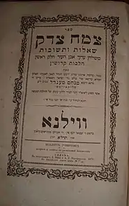 - ↑ "Tzemach" (צמח) has the same gematria as "Menachem" (מנחם), and "Tzedek" (צדק) has the same as "Mendel" (מענדל). The original responsa Tzemach Tzedek were those of Menachem Mendel Krochmal. Schneersohn's responsa are known as Shu"t Tzemach Tzedek Hachadashot, "the new Tzemach Tzedek responsa". Rabbi Menachem Mendil Hager, the first Viznhitzer Rebbe, called his commentary on the Torah Tzemach Tzadik (צמח צדיק), because he spelled his name with an extra yod (מענדיל).