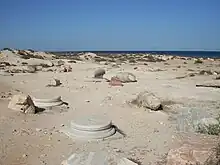 Meninx (Greek: Μῆνιγξ, Mē̂ninx) is a Tunisian archaeological site located on the southeastern coast of the island of Djerba, near the present city of Henchir El Kantara. It stretches 2 kilometers (1.2 mi) long and 800 meters (2,600 ft) wide, some of which has probably been submerged by the sea. The theater is at 33.688° N, 10.925° E.