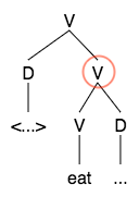 When we consider the features of the word that provide the label when the word projects, we assume that the categorical feature of the word is always among the features that become the label of the newly created syntactic object.[11] In this example below, Cecchetto demonstrated how projection selects a head as the label.
