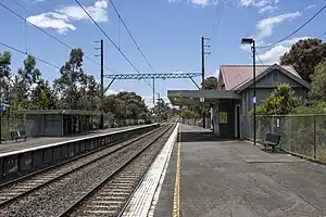 ![]() Northbound view from Platform 1 in November 2022 | ||||||||||||||||||||||||||||||||||||||||||||||||||||||||||||||||||||||