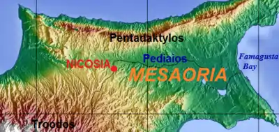 The Mesaoria (Greek: Μεσαορία, Turkish: Mesarya) is a broad, sweeping plain which makes up the north centre of the island of Cyprus.