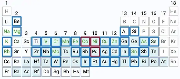- ↑ Faurschou A, Menné T, Johansen JD, Thyssen JP (April 2011). "Metal allergen of the 21st century--a review on exposure, epidemiology and clinical manifestations of palladium allergy". Contact Dermatitis. 64 (4): 185–195. doi:10.1111/j.1600-0536.2011.01878.x. PMID 21392026. S2CID 25649164.