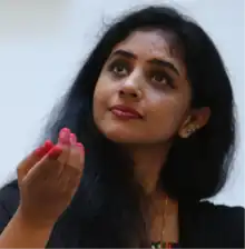 She received the Best Dancer Award of the Mid‐Year Fest from Madras Music Akademy in 2016.[25] She is empanelled into SPIC‐MACAY (Society for the Promotion of Indian Classical Music and Culture Amongst Youth) in 2010.[26][27] She is empanelled artiste for Mohiniyattam at the Indian Council for Cultural Relations.[28] Her recent award was the Dakshinamurthy Puraskar which she received in 2022 along with Pandit Hariprasad Chaurasia and Sivamani.[29]