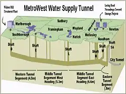 The MetroWest Water Supply Tunnel (MWWST) is an advanced underground aqueduct that supplies potable water to residents of much of Greater Boston. It is part of the Massachusetts Water Resources Authority (MWRA) water supply system, having entered operation in November 2003.[1]