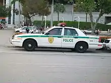 Miami-Dade Police officers wear taupe/brown uniforms. Their vehicles are green and white.[4]