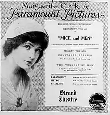 Mice and Men is a lost 1916 silent romance film directed by J. Searle Dawley, starring Marguerite Clark, and based on a 1901 Broadway play, Mice and Men by Madeleine Lucette Ryley.[1][2]