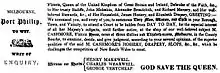 A newspaper's comment on this advertisement was: "We should explain that Cashmore is a real name. If the syllables were transposed it would, of course, be more appropriate, as, like ail true traders, he is tolerably anxious [for a profit]"[3]