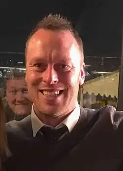 Flynn worked part-time jobs early in his career, stacking shelves while a youth player for Newport. He worked as a postman in 2001 prior to his first professional contract with Barry Town.[53] Flynn married Victoria in 2016, and has five children; one daughter and two sons from previous relationships: Dionne (b. 2000), Charlie (b. 2014) and Theo (b. 2014) and two sons with Victoria: Edward (b. 2015) and Samuel (b. 2017).[52][54]