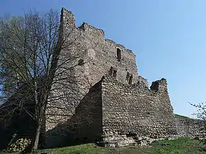 The ruins of the early Gothic architecture Michalovice castle stands on the right bank of the Jizera river. It was built by members of the Markvartice family during the last quarter of the 13th century to replace an earlier manor house. It was left to decay in the 15th century. In the 19th century the ruins of the castle were sacked by treasure hunters, and now only the tower remains.