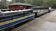 The Michigan AuSable Valley Railroad was a 16 in (406 mm), 1/4-scale ridable miniature railway, located in Fairview, Michigan. The railroad ran through the scenic Huron National Forest and the Comins Creek valley.[1][2][3][4][5][6][7][8][9][10][11][12][13] The railroad operated continuously from 1994 before closing permanently in 2021[14] due to COVID-19 and deteriorating infrastructure, trestles and roadbed.[15]