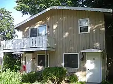 Willson and his group decided to split the property into 23 lots and create a residential beach association, requiring that all leaseholders build on their land within two years or else relinquish their leases.[5] Combined with the stipulation that all buildings constructed had to be worth at least $600, the result was the creation of a number of comfortable and fairly simple two-story cottages. In 1895,[10] the property's leaseholders decided to name it "MICH-ILL-INDA", in reference to the three states from which they hailed: Michigan, Illinois, and Indiana.[4][5]