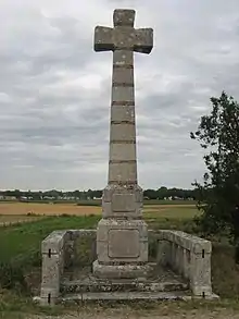 The base of the cross bears the following inscription: "I stand on the ruins of the monastery of Micy founded under Clovis I, Christian, king of the Franks. In the year of the Lord 1858, Pius IX being supreme pontiff, Napoleon III emperor. Félix Dupanloup, bishop of Orléans, dedicated this monument to the venerated memory of Saints Euspice and Mesmin, founders of the abbey of Micy."