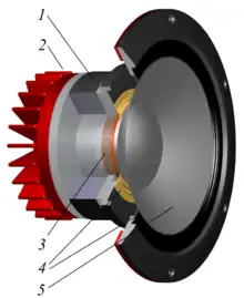 Cutaway view of a dynamic mid-range speaker