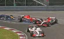 Midland F1 Racing (also known as MF1 Racing, or simply "Midland") was a Formula One constructor and racing team which competed in the 2006 Formula One season with drivers Christijan Albers and Tiago Monteiro. The team was created by the renaming of Jordan Grand Prix after its purchase by Canadian businessman, and owner of the Midland Group, Alex Shnaider. The team was licensed as the first Russian Formula One team,[1] although it continued to be based in the United Kingdom, at Jordan's Silverstone factory. Towards the end of the 2006 season, the team was sold to Spyker Cars N.V.; the team raced in its last three Grands Prix under the official name Spyker MF1 Racing.[2] In 2007, the team competed as Spyker F1, and in 2008 was sold to Indian businessman Vijay Mallya and was renamed Force India F1.[3]