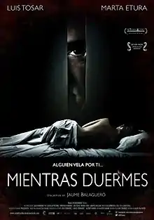 Sleep Tight[n. 1] (Spanish: Mientras duermes; lit.'While You Sleep') is a 2011 Spanish psychological thriller film directed by Jaume Balagueró from a screenplay by Alberto Marini which stars Luis Tosar alongside Marta Etura. In the film, César (Tosar), a concierge of an apartment building, is unable to reach happiness no matter what happens to him, and he has a goal to make the tenants upset. Clara (Etura) proves to César that making her upset is harder than he expected and things turn to a twisted event when her boyfriend Marcos visits her. Sleep Tight was considered one of the most anticipated films to be premiered at the 44th Sitges Film Festival.[2]