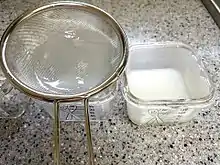 Mieum (미음; 米飮) is a thin, strained gruel made from white rice, white glutinous rice, foxtail millet, or glutinous foxtail millet.[1][2] It is often used in liquid diet for patients and for recently weaned children.[2] A thinner mieum, made from rice water or mixed with powdered milk, is sometimes used as a breast milk substitute for younger babies.[2][3]