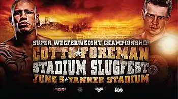 - ↑ "Cotto vs. Foreman: Is Yankee Stadium Ready For Some Boxing?". ESPN. June 5, 2010. Retrieved July 1, 2010.