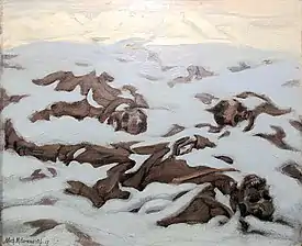 Mihailo Milovanović (Gostinica, Serbia, 24 February 1879 – Užice, Kingdom of Yugoslavia, 28 November 1941) was a Serbian painter, sculptor and writer. He was one of the founders of the Association of Painters of Serbia (Udruženja likovnih umetnika Srbije). During the First World War, he was a war painter of the Serbian Army's Supreme Command and, as such, he painted portraits of Voivodes Radomir Putnik, Živojin Mišić, Stepa Stepanović and Petar Bojović, as well as General Pavle Jurišić Šturm, King Peter I of Serbia and Regent Alexander Karađorđević.[1]