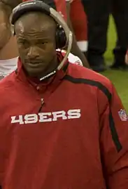 Michael Eric Johnson (born May 2, 1967) is an American football coach and former quarterback, and current wide receivers coach for Syracuse. He was the interim head coach for the UCLA Bruins football team after serving as their offensive coordinator. Previously, he spent two years with the San Francisco 49ers of the National Football League. Johnson was hired along with former offensive coordinator Jimmy Raye by San Francisco head coach Mike Singletary on February 6, 2009. Raye was fired on September 27, 2010 and Johnson was promoted.[1] Beginning in 2014 he served for three seasons as head coach of The King's Academy Knights in Sunnyvale, California, before being hired as wide receiver coach by the University of Oregon in 2017.