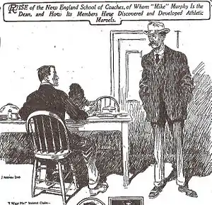 - 1 2 3 4 5 "Mike Murphy Occupies Unique Position In Athletic World: Famous Trainer Has His Own Ideas, One of Which Is That Football Is Good for Any Young American—Differs With Pessimists". The Washington Post. Philadelphia. December 13, 1908. p. 4. Retrieved April 11, 2020 – via Newspapers.com.