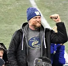 ![]() O'Shea at the Blue Bombers 2021 Grey Cup celebration in Winnipeg | |