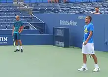 Mikhail Youzhny practicing with his longtime coach Boris Sobkin