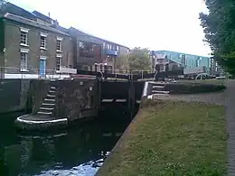 Mile End Lock is a lock on the Regent's Canal,[1] in Mile End, in the London Borough of Tower Hamlets. The lock spans the Regent's Canal between Queen Mary University of London and Mile End Park, and the canal path goes under Mile End Bridge.[2] There is a 19th-century lock keeper's cottage.[1][3][4]