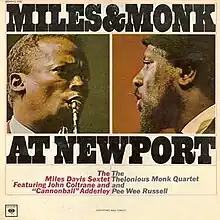 Miles & Monk at Newport is a split album featuring separate performances by the Miles Davis sextet and the Thelonious Monk quartet at the Newport Jazz Festival, recorded in 1958 and 1963, respectively, and released in June 1964 by Columbia records.[1][2] Despite the album's title, the two artists do not perform together at either date.