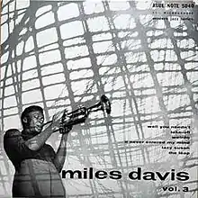 Miles Davis, Vol. 3 (BLP 5040) is the sixth 10" studio album by musician Miles Davis, recorded on March 6, 1954 and released by Blue Note later that year, the third and last of his three ten-inches published for the label.[3][4] Davis would once again record at Blue Note, but as a sideman on Cannonball Adderley's Somethin' Else (BLP 1595), several years later.