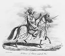 Caboceer (Chief) of Ashanti equipped for war. Image was engraved in the early nineteenth century