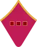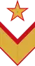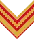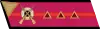 - Sleeve: One large star in gold embroidery, red piping, below a red coloured chevron in gold embroidery, surrounded by two gold laurel-twigs with red piping.