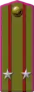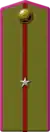 | Translation[7] | Marshal of the Soviet Union | General of the army | Colonel general | Lieutenant general | Major general | Colonel | Lieutenant colonel | Major | Captain | Senior lieutenant | Lieutenant | Junior lieutenant | Officer cadet | ||||||||||||||||||||||||