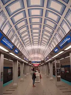 The Milwaukee–Dearborn subway is an underground section of the Chicago "L" system in The Loop, Chicago, Illinois. It is 3.85 mi (6.20 km) long and forms the central part of the Blue Line. As of February 2013, the subway serves an average of 44,584 passengers each weekday.[1] Since the subway is served by the Blue Line, it is open to passengers 24 hours a day and 365 days a year.