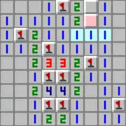 An unopened cell is blank and clickable, while an opened cell is exposed. Flagged cells are unopened cells marked by the player to indicate a potential mine location; some implementations make flagged cells unopenable to reduce the risk of uncovering a suspected mine.[1]