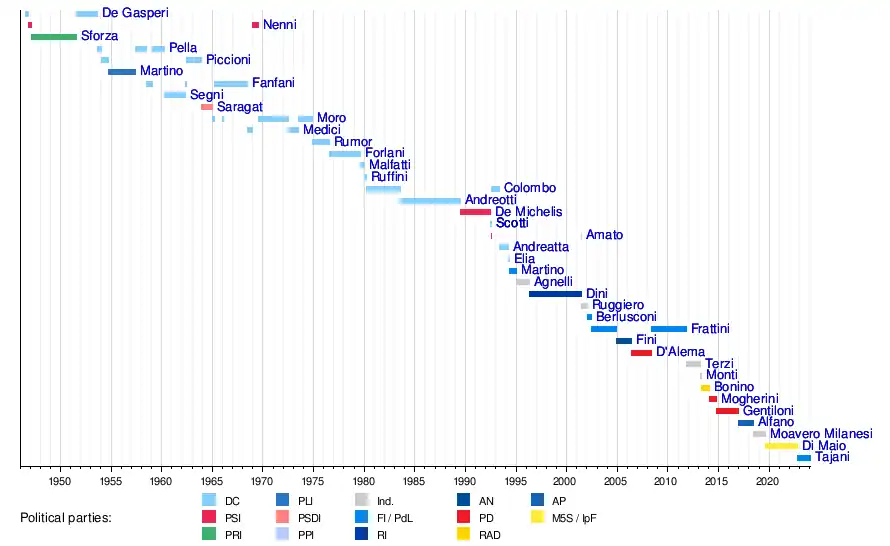 25 March 1960 | 7 May 1962 | 2 years, 43 days | Christian Democracy | Tambroni Fanfani III·IV |