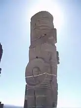 The back of a Toltec atlante at Tula, showing the sculpted back mirror