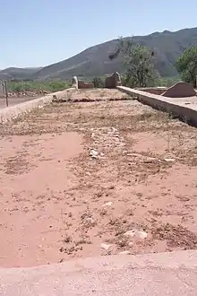 The buildings were surrounded by a wall with surveillance towers. There was also an irrigation system consisting of a dam and stone-lined ditches for watering the fields.