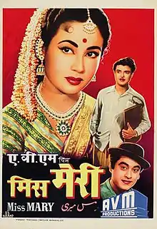 Miss Mary is a 1957 Indian comedy film directed by L.V. Prasad. The movie is an AVM production, written by Hargobind Duggal, and directed by L. V. Prasad.[1] The original Missamma was directed in Telugu in 1955 and was remade as Missiamma in Tamil with Savitri playing the title role in both films. It was remade in Hindi as Miss Mary in 1957 with Meena Kumari in the title role, keeping Jamuna as the constant factor in all these films. L. V. Prasad directed all three versions. The music was by Hemant Kumar with the lyrics and dialogue written by Rajendra Krishan. The songs were sung by Kishore Kumar, Lata Mangeshkar, Asha Bhosle, Geeta Dutt and Mohammed Rafi. The film's script was adapted by Chakrapani from two Indian Bengali-language novels: Rabindranath Maitra's Manmoyee Girls School[2] and Sharadindu Bandyopadhyay's Detective.