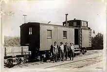 The minerals and supplies of the St. Joseph Lead Co., which operated one of the world-leading lead mines, were transported until 1880 on animal-drawn wagons between the mines and the St. Louis and Iron Mountain Railway.[2] In 1880 the St. Joseph Lead Company laid the track a 10 miles (16 km) long narrow gauge railroad[2] with a gauge of 3 feet (910 mm).[3] It was inaugurated on 18 January 1880 and became known as the St. Joseph & Des Loge Railway.[4] It was used to transport goods westerly from Bonne Terre to Summit, a point on the line of the St. Louis, Iron Mountain & Southern Railway Company, but the mine products of the St. Joseph Lead Company had still to be hauled for 18 miles (29 km) by ox-team from the mines to Bonne Terre. The narrow-gauge line was apparently jointly owned by the St. Joseph Lead Company and the Desloge Company. It was removed after the M.R. & B.T.'s property was placed in service.[1] The cost was split between both companies: The St. Joe paid 66% and the Desloge Company paid 33%. The St. Joe Lead Company acquired in 1887 the assets of the Desloge Lead Company, and tried to find a shorter route, to reduce the transportation cost.[2][5]