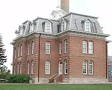 Iron County, Missouri (Ironton) and Phelps County, Missouri (Rolla) made bids for the school, with Phelps County's bid winning in 1870.[17] Classes began on November 23, 1871, in a new building that the city of Rolla had just built. The college had an enrollment of 28 and three graduates in 1874.[17] The college bought what is now called the "Rolla Building" for $25,000 in January 1875. That building is now used as the Mathematics and Statistics Department's library, chair's office, part of the main office, and other faculty offices following a $2 million renovation in 1995.[18]