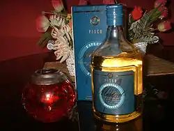 Bottle and container of Chilean pisco.