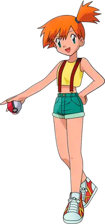 The anime follows the quest of one of the main characters, Ash Ketchum, as he and his friends travel around the fictitious world of Pokémon along with their Pokémon partners. Misty is a stubborn tomboy who trains Water Pokémon and has three siblings, Daisy, Lily, and Violet. She left the Gym to her three older sisters prior to traveling with Ash in the anime, although she still retained the title of Gym Leader despite this.[8] She first comes across Ash when she accidentally fishes him and his Pikachu out of a river while fishing for water Pokémon. Soon after this incident, Ash "borrows" her bike in an attempt to flee from a flock of wild Spearow. The bike is later charred by an attack from Pikachu.[9] Misty tells Ash she will not leave him alone until he replaces the bike and commits to follow him on his journey, and the two soon become best friends. After retrieving her repaired bike at the end of the Johto League Silver Conference, she returns to the Cerulean Gym and resumes her duties as the Gym Leader.