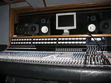 A mixing console or mixing desk is an electronic device for mixing audio signals, used in sound recording and reproduction and sound reinforcement systems. Inputs to the console include microphones, signals from electric or electronic instruments, or recorded sounds. Mixers may control analog or digital signals. The modified signals are summed to produce the combined output signals, which can then be broadcast, amplified through a sound reinforcement system or recorded.