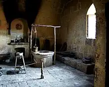 - This kitchen draws a lot of attention for the particularity of its environment that takes us back centuries. Some experts believe that its high domed ceiling was due to the fact that it was or was going to be used as a chapel. The kitchen worked with coal, firewood and other fuels, that is why all the walls are blackened and the utensils that can be seen in it are original from that time.