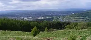 Moncreiffe Hill (also known as Moredun Hill)[1] is a long, wooded ridge that lies south of Perth, Scotland. It can be easily seen on the right during the final stages of the drive north towards Perth on the M90 motorway. Unlike most Scottish hills, the routes to the summit are almost entirely under tree cover, although the summit area, which is known as Moredun Top, is clear and offers impressive views over Perth and the River Tay.